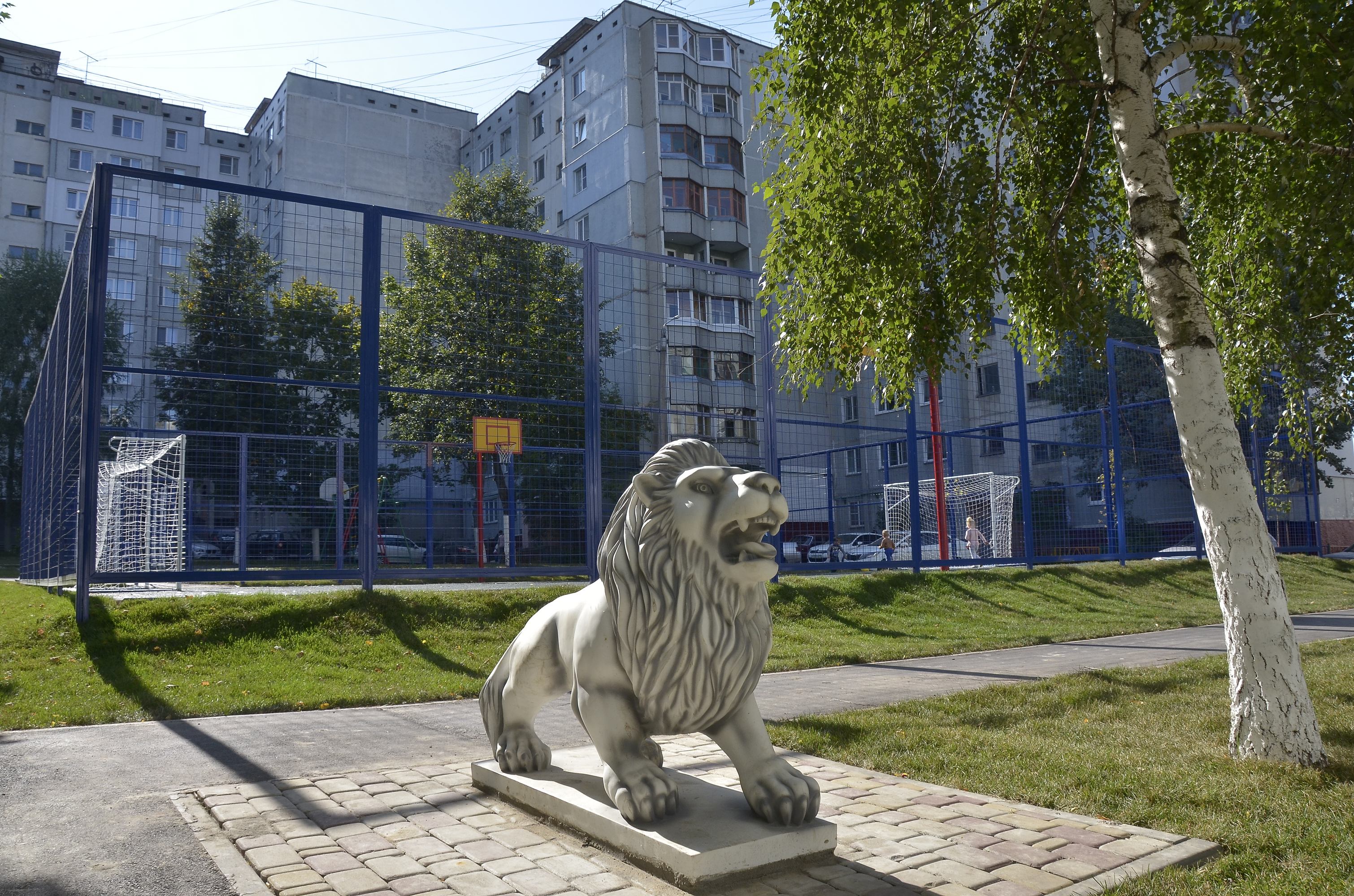 В Советском округе на ул. Пушкинской, 32 двор благоустроен с использованием символики Белгорода. Во дворе установлена фигура льва, который изображён на гербе Белгорода. Скульптура выполнена из архитектурного бетона.
