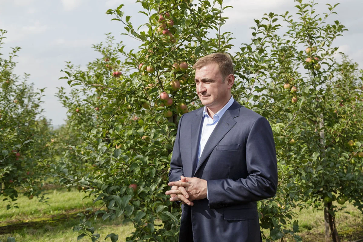 Алексей Дюмин поел вкусных яблочек от тульских производителей