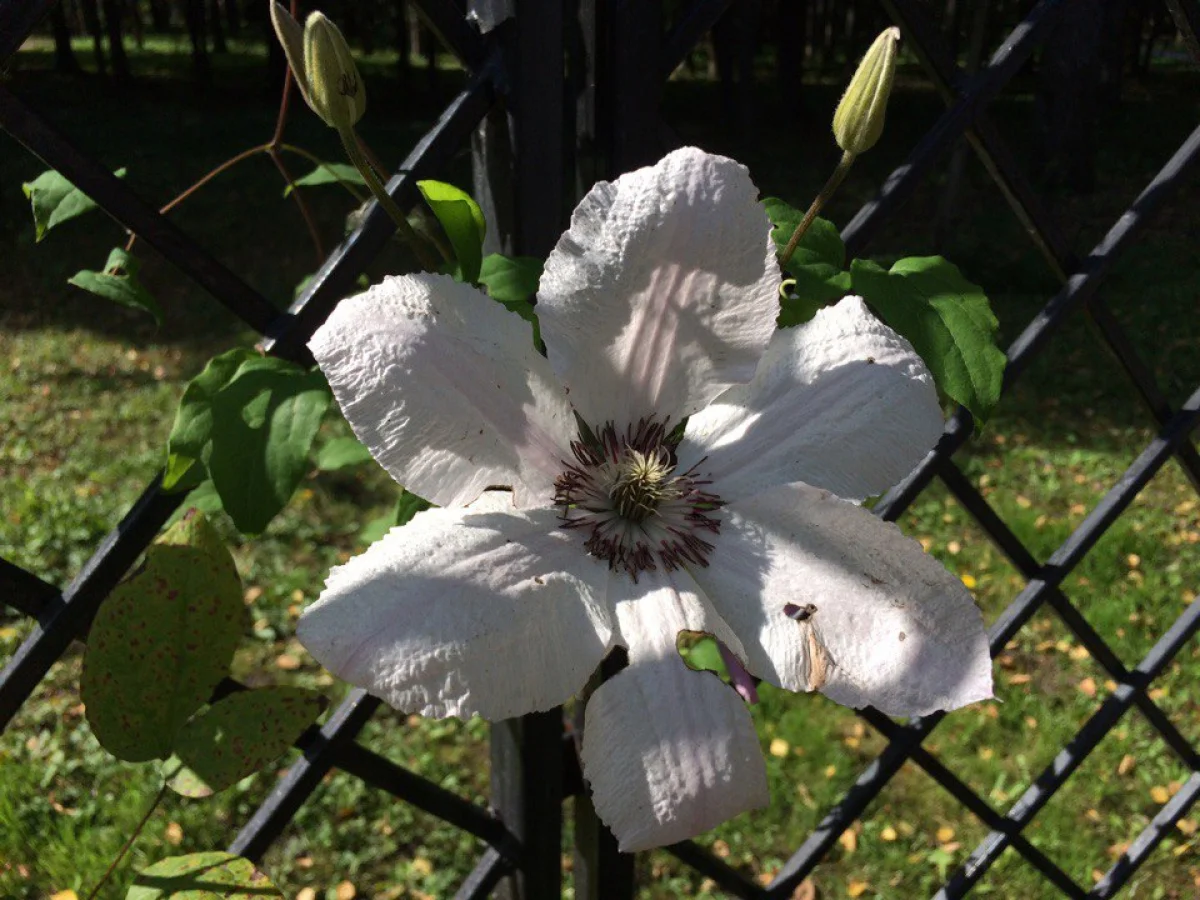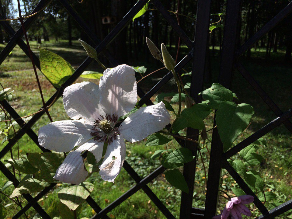 В комсомольском парке Тулы неожиданно распустились клематисы — красивейшие лианы, покрытые сотнями разноцветных цветов.