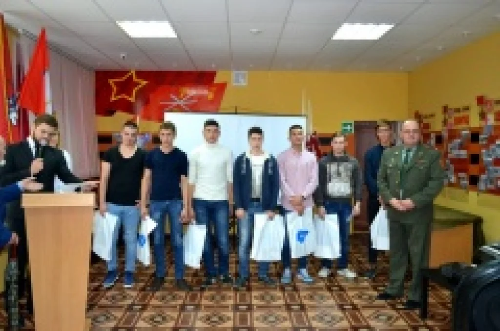 В торжественной обстановке напутственные слова призывникам произнесли заместитель командира роты по работе с личным составом 51-го Гвардейского парашютно-десантного Краснознаменного ордена Суворова 3-й степени полка им. Дмитрия Донского Владимир Владимирович Чуракин, старший помощник начальника отделения подготовки и призыва военного комиссариата городского округа город Тула Тульской области Александр Владиславович Бондалетов, ветераны Великой Отечественной войны Иван Андреевич Макаров и Василий Андреевич Кондратов.