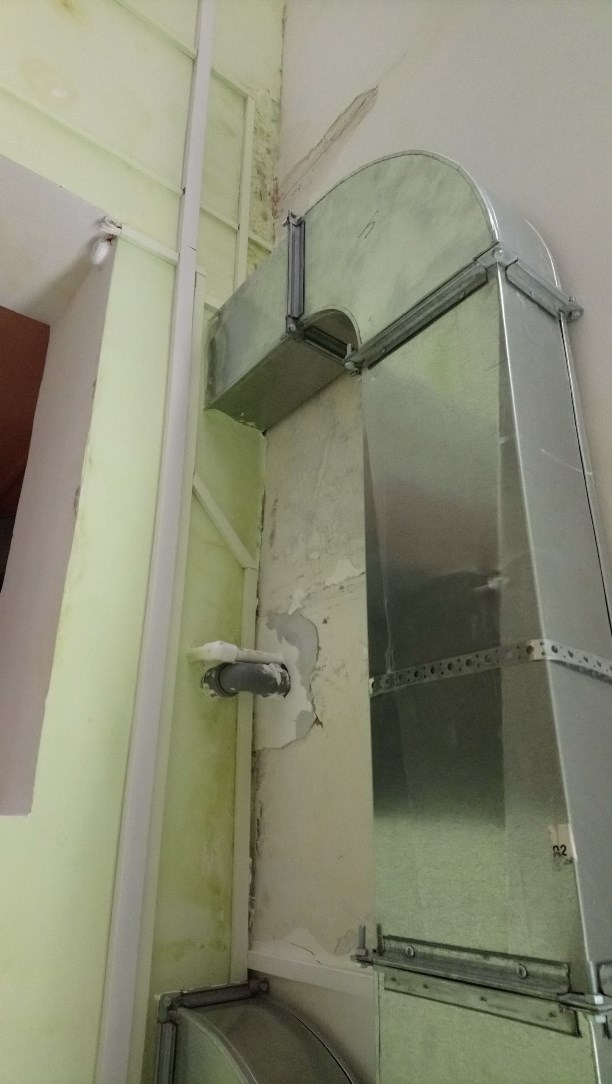 «Такая картинка встречает при входе. Видимо, потолок первого этажа затопило? Почему не починили? Это навсегда теперь? Вообще, косяков невероятно много, было видно, что очень торопились сдать объект, материалы дешёвые, но даже из них можно было сделать лучше», - подписал фотографии автор Александр Лукин.