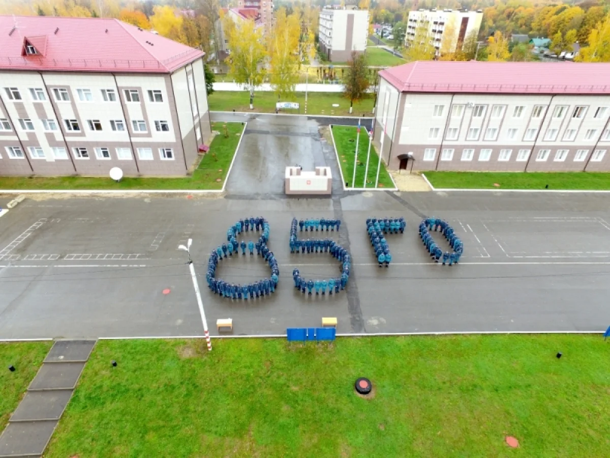 На площади перед зданиями Центра бойцы выстроились в надпись 85 лет ГО.