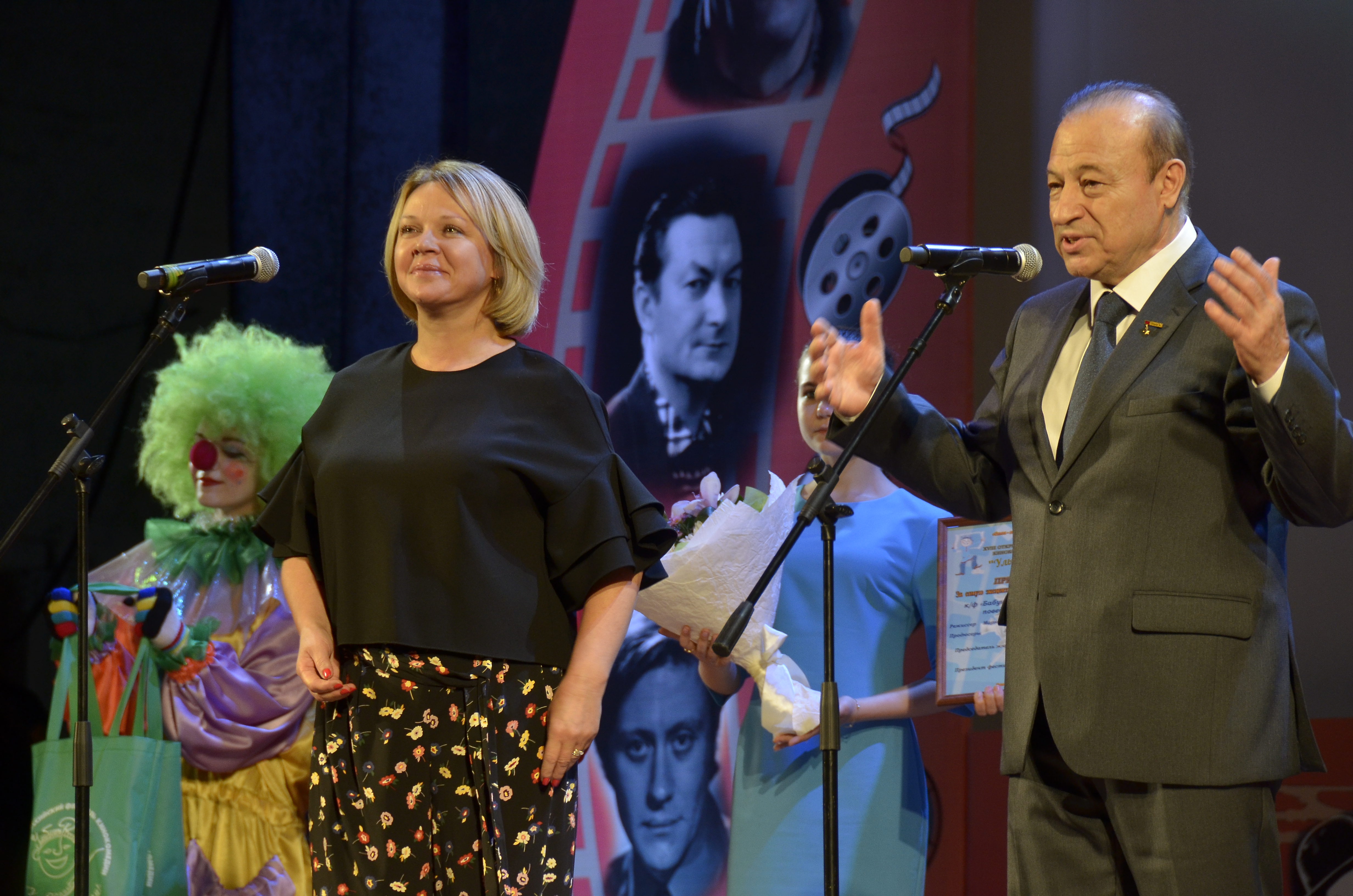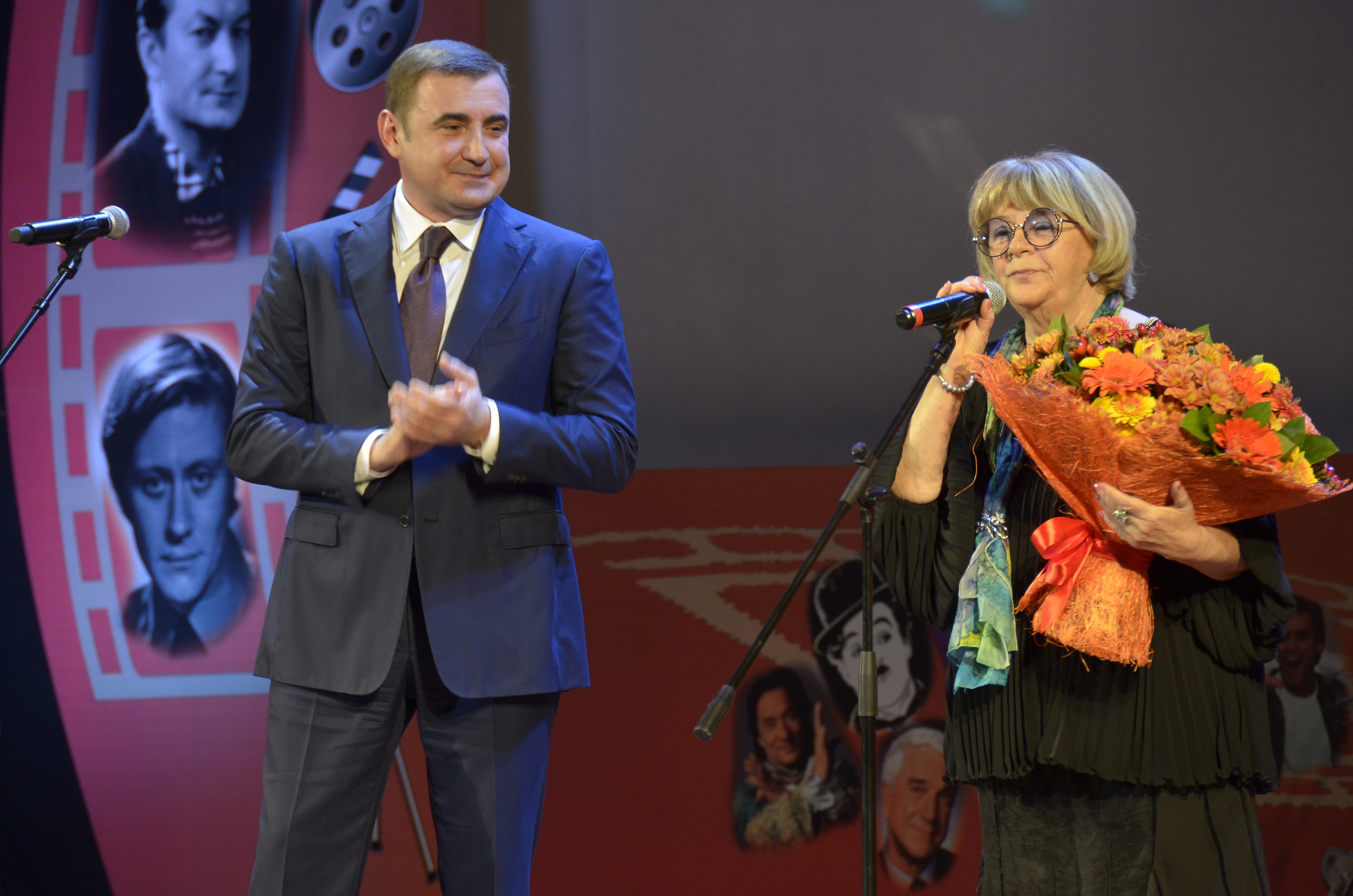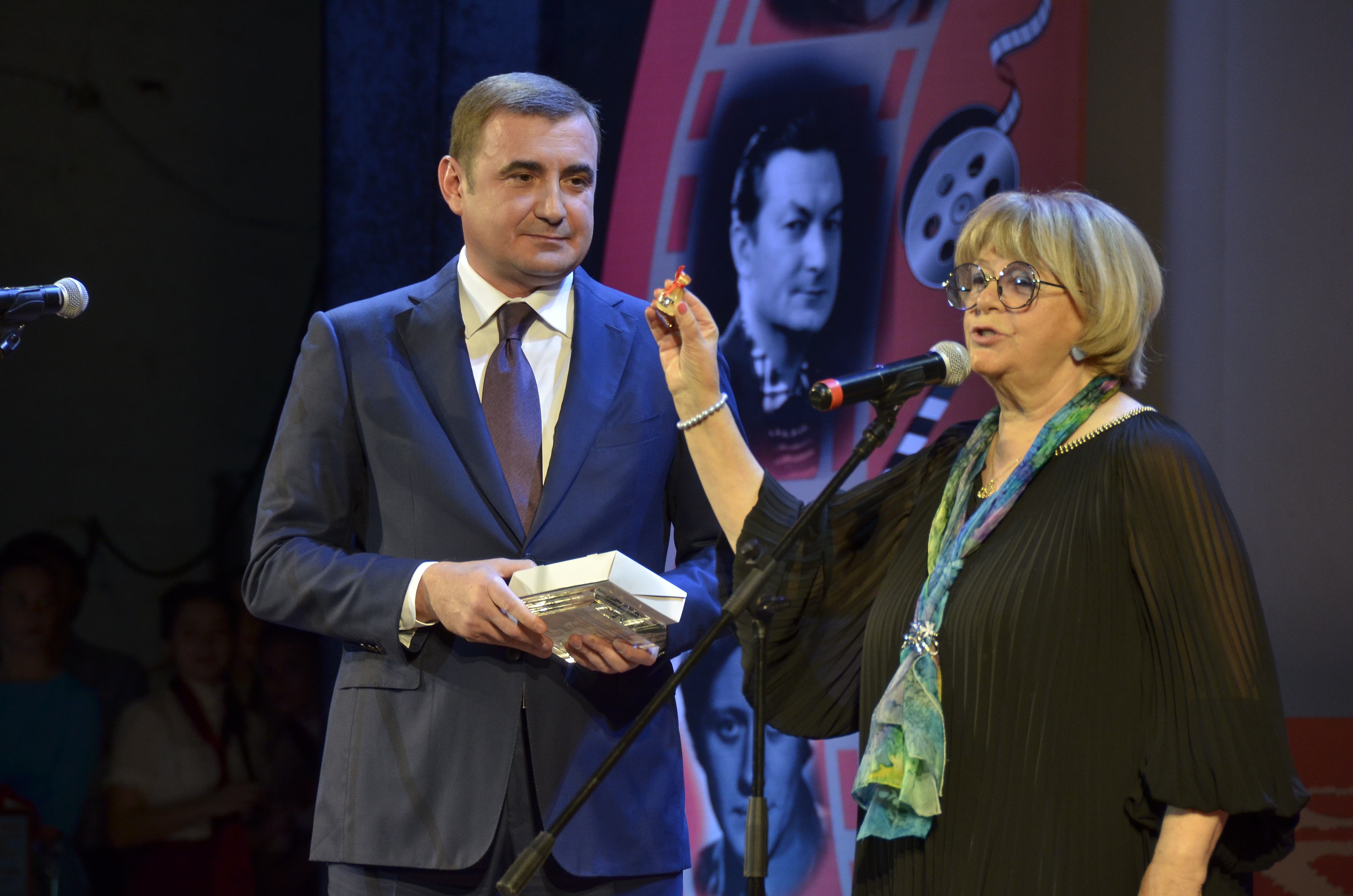 В свою очередь президент кинофестиваля Алла Сурикова вручила благодарственную плакетку, конфеты собственного изготовления и мешочек «смеха» губернатору за помощь в организации мероприятия.