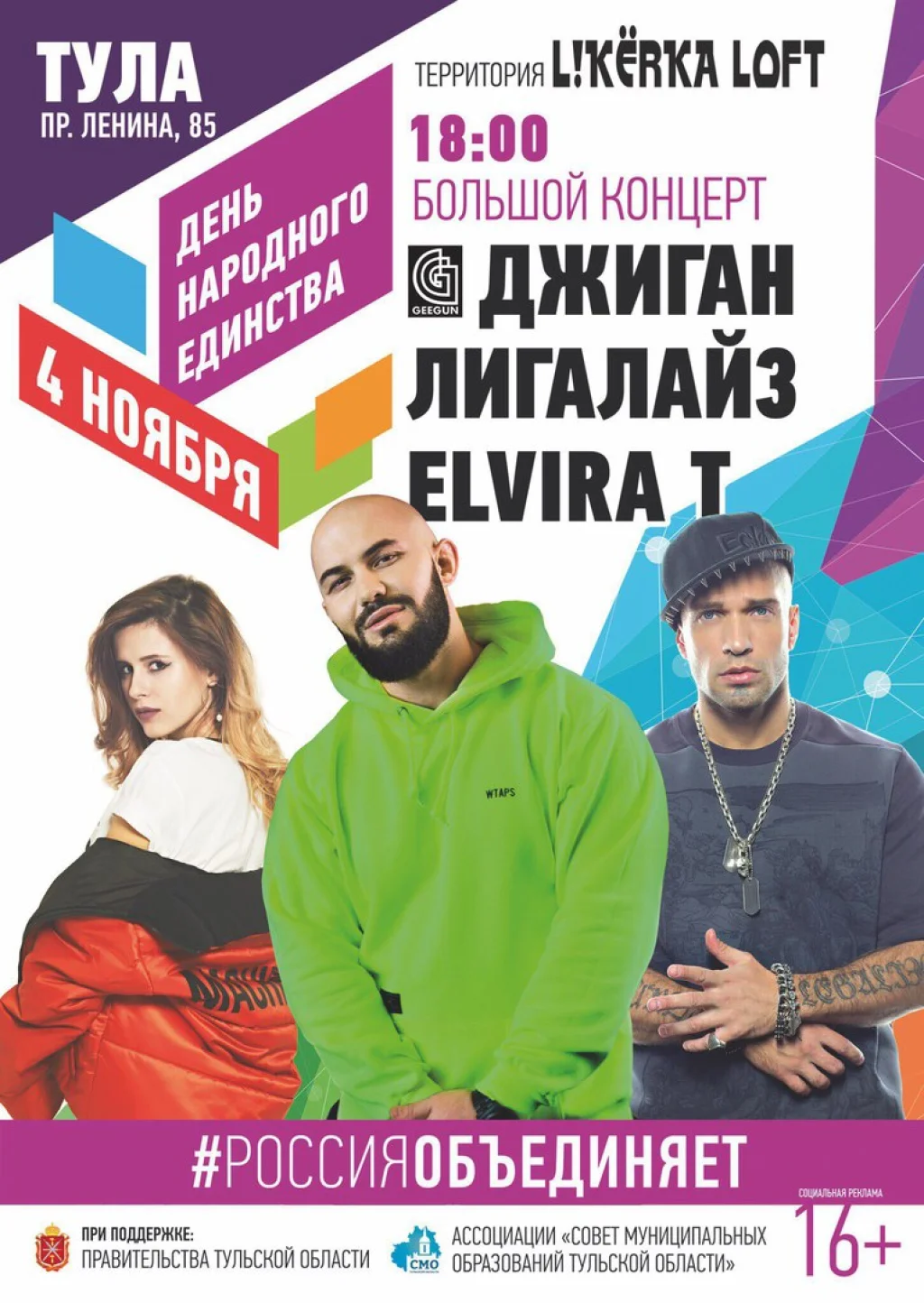 В 18.00 в Likёrka Loft пройдёт большой концерт, хедлайнерами которого станут Джиган, Лигалайз и Elvira T. Вход свободный.