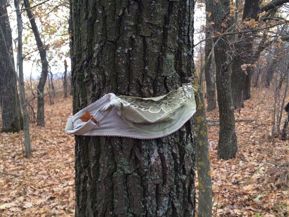 Туляк заснял на видео «логово маньяка» с лифчиками на деревьях. ФОТО