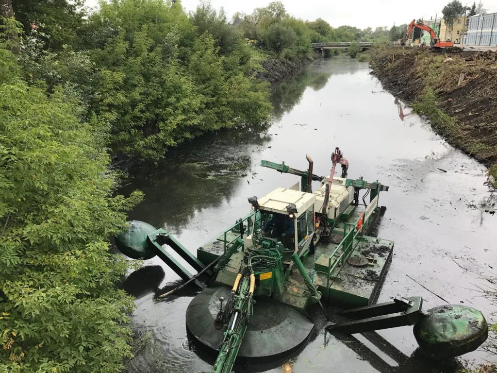 Связи со строительство набережной компания ООО «Акватория» приглашена для очистки старицы реки Упы. Представителя компании Андрея Петровича Баринова рассказал о предстоящих работах и о новом оборудовании, которое позволит безопасно очистить реку от ила.