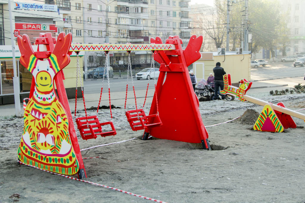 Сейчас рабочие устанавливают «филимоновские игрушки» из полимерных материалов, которые наверняка понравятся юным тулякам. Также в сквере будут горка и качели. На землю уложат безопасное резиновое покрытие, а в центре площадки посадят живую ель.