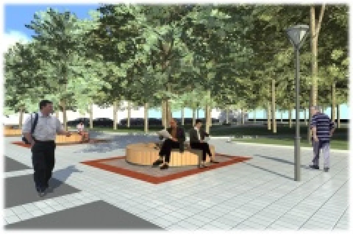 Предлагается центральную часть разделить на несколько зон, одну часть заасфальтировать, другую уложить плиткой. Вокруг деревьев на центральной аллее установить лавочки. Также предложено обустроить игровую площадку, территорию для отдыха взрослого населения, амфитеатр для проведения массовых мероприятий, сделать освещение. Проект участниками совещания принят за основу.