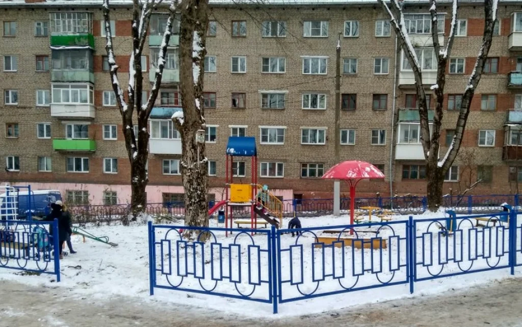 В рамках благоустройства Привокзального округа в сквере в п. Косая гора, по ул. Октябрьской, д.1 выполнено асфальтирование, устройство газона, ограждения детской площадки, установка МАФ, устройство спортивной площадки с резиновым покрытием