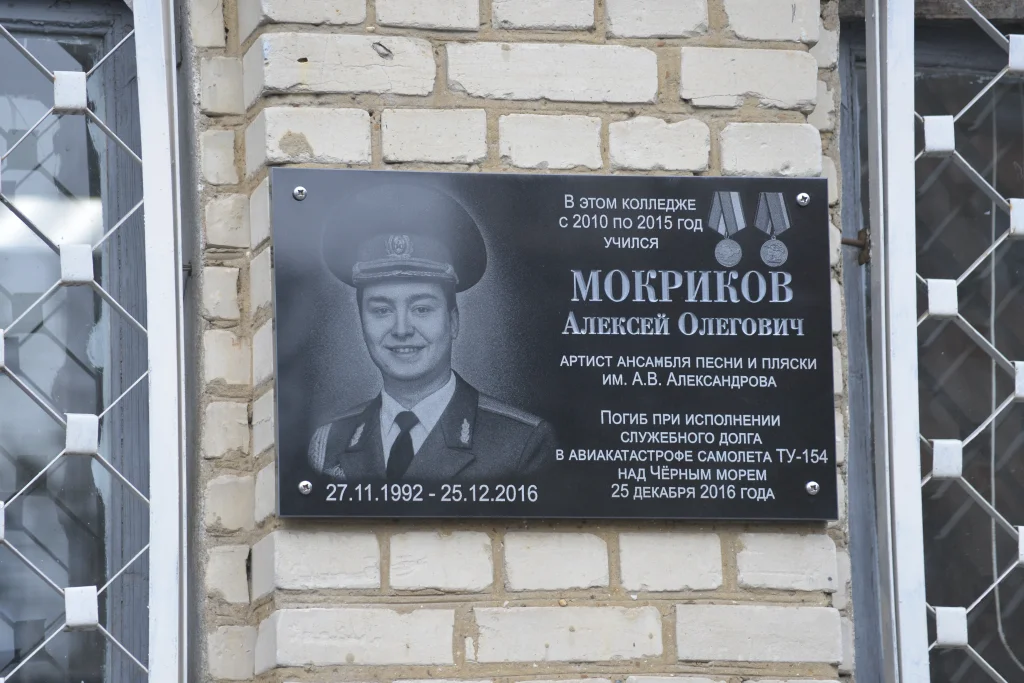 Алексей Олегович Мокриков, артист ансамбля песни и пляски имени А. В. Александрова, погиб при исполнении служебного долга в авиакатастрофе самолёта ТУ-154 над Черным морем 25 декабря 2016 года.
