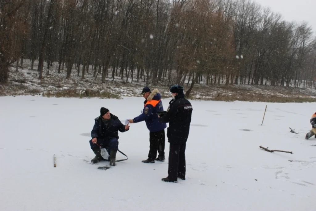 Любителям рыбной ловли напомнили, что выход на лед в период его образования категорически запрещен и раздали памятки о правилах безопасного в экстремальных ситуациях.