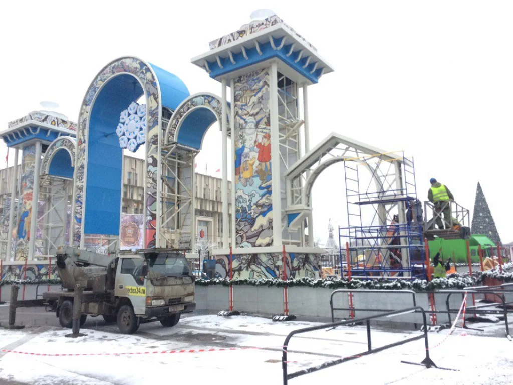 На данный момент установка целого комплекса красивейших арок завершается. Праздничный элемент длиной 29 метров и высотой 13 метров будет встречать всех на входе главной площади Тулы.
