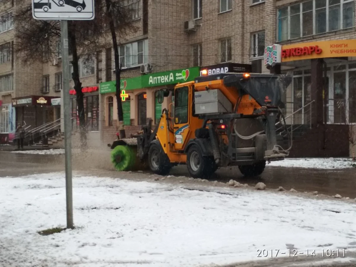 Днем проводится работа по обработке противогололедными составами проезжей части улично-дорожной сети города, сбору случайного мусора, подметание и очистке тротуаров, остановочных павильонов, разворотных колец, магистральных и второстепенных дорог и улиц, а также ручной уборке тротуаров на мостах и путепроводах.