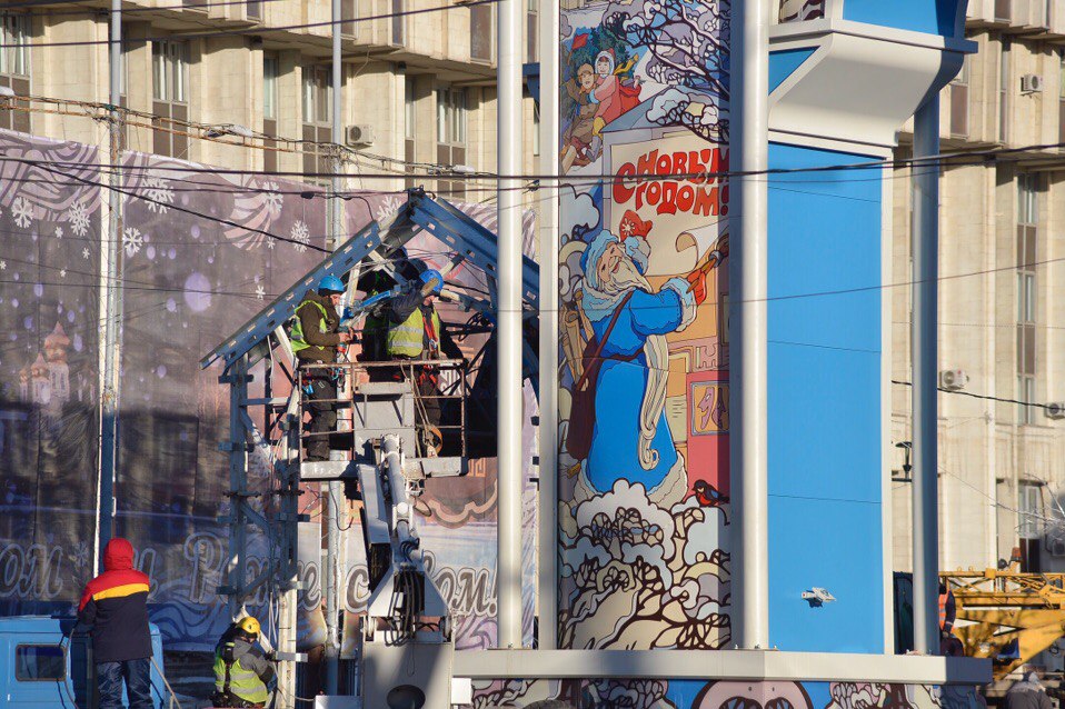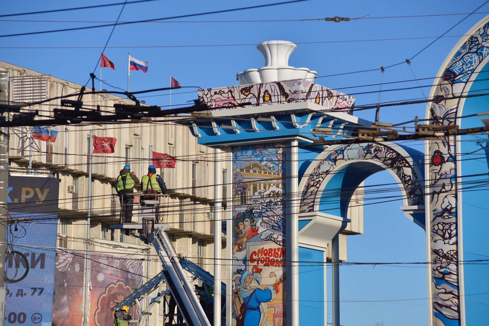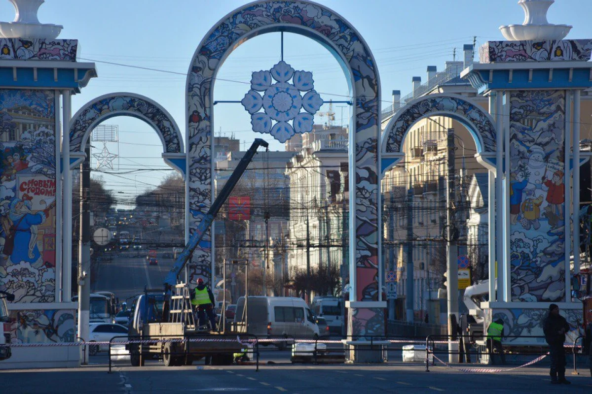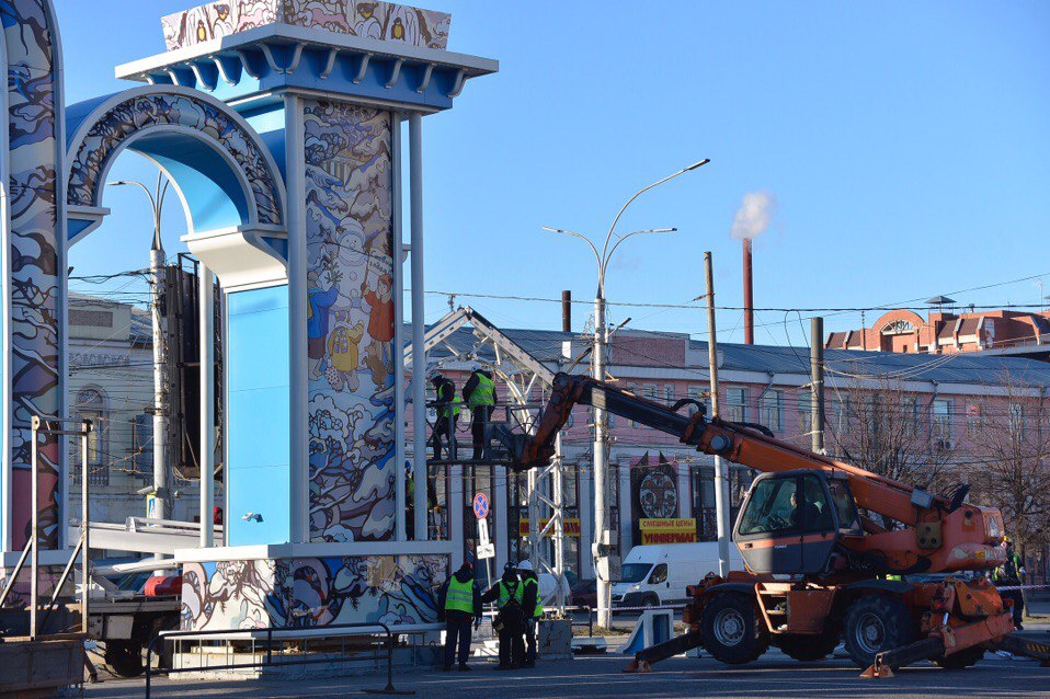 Полюбовались и хватит: на площади Ленина разбирают праздничную арку