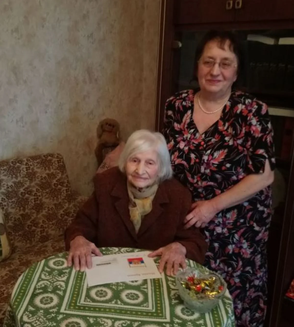 Поздравительную открытку и подарок от Президента РФ передал заместитель начальника главного управления по Центральному территориальному округу по социальной политике Инесса Сулина и представитель отдела социальной защиты населения по Туле.