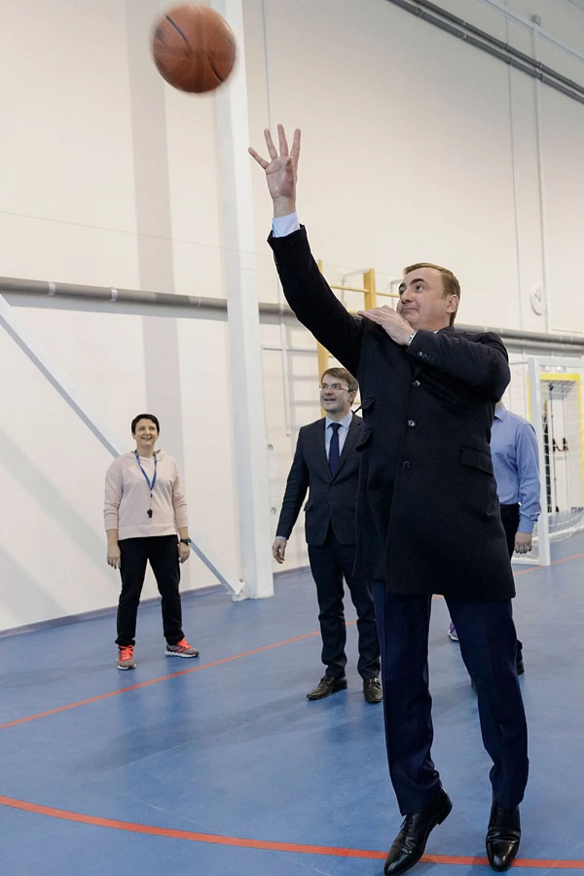 Алексей Дюмин сыграл в баскетбол в новом ФОКе поселка Шатск