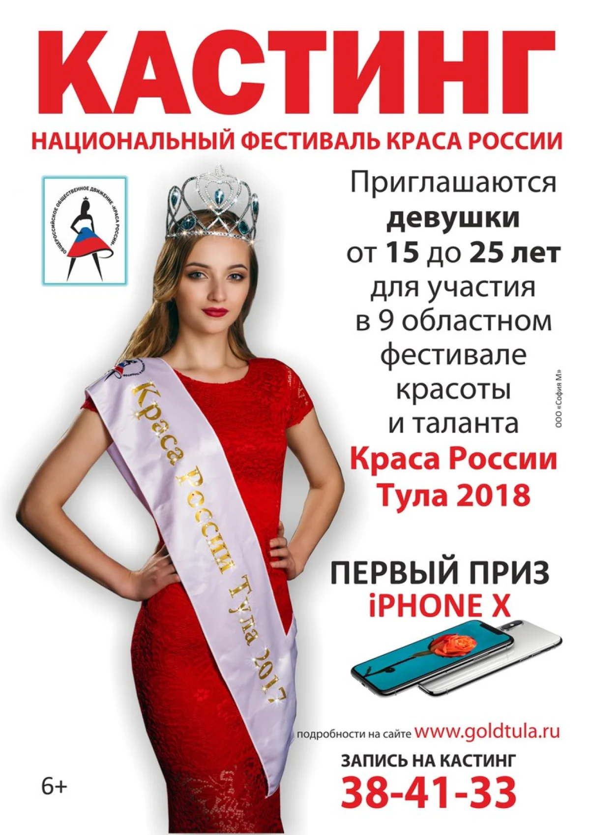 Эксклюзивный представитель по Туле и Тульской области национального конкурса красоты «Краса России» модельное агентство GOLD MODELS приглашает девушек от 15 до 25 лет принять участие в IX областном фестивале красоты и таланта «Краса России Тула» - 2018.