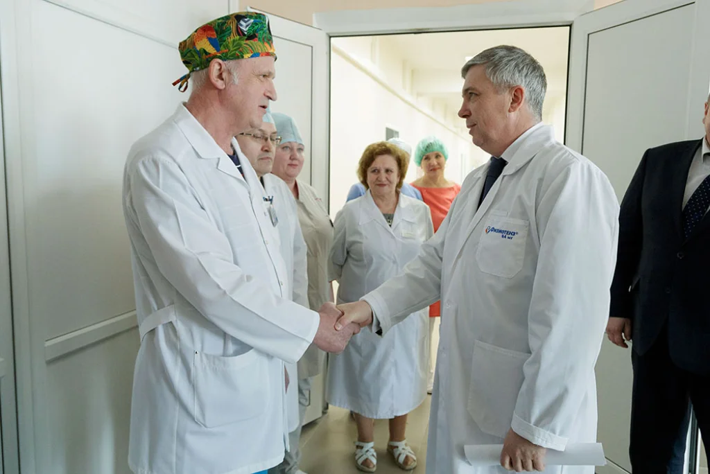 Обновлённое отделение посетил министр здравоохранения Андрей Третьяков. Он осмотрел отремонтированные комфортные одноместные, двухместные и трехместные палаты, врачебные и процедурные кабинеты. Также министр пообщался с медперсоналом и пациентами отделения.