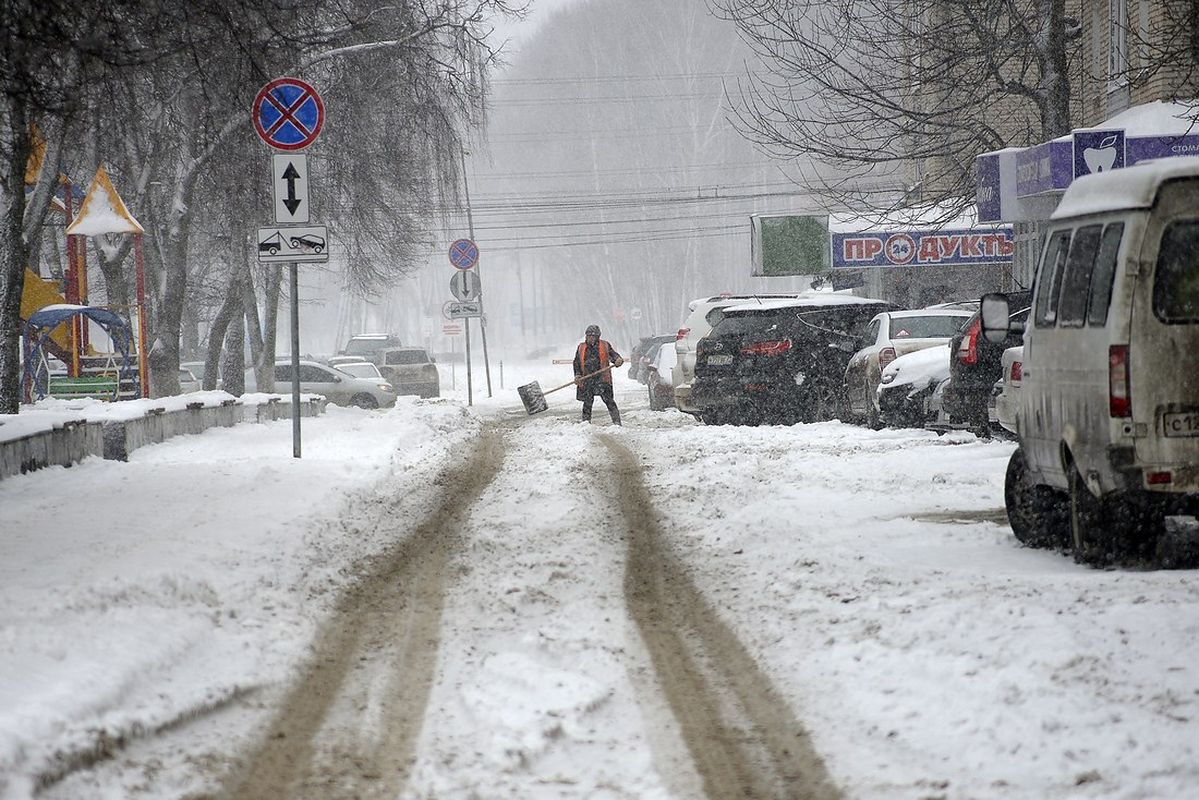Пока туляки готовились ко второму подходу упражнений с лопатой для рук и с лыжами для ног, город убирали около 100 тракторов, грейдеров и снегоуборщиков. В первую очередь расчищались центральные улицы, тротуары и парковочные карманы.