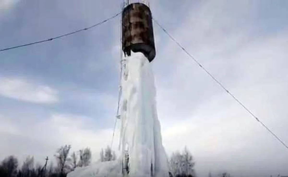 В поселке Советский Киреевского района Тульской области обледенела водонапорная башня. Об этом на своем канале в You Tube сообщил местный житель Сергей Медведев.
