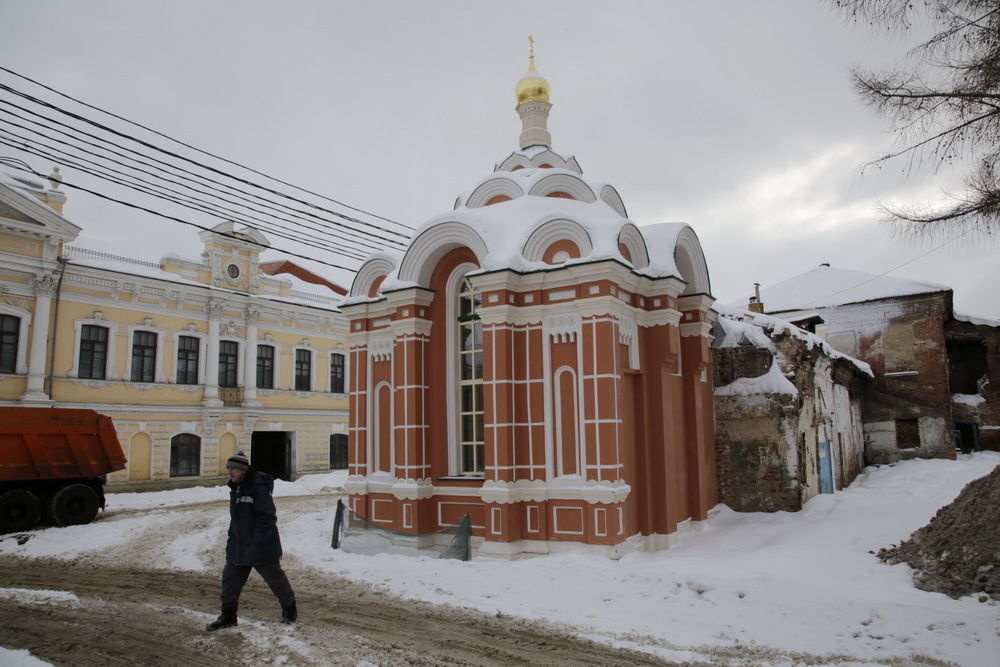 Также в состав храмового комплекса входит уже отреставрированная часовня Параскевы Пятницы. Журналистам показали и дом Сидневых, реставрация которого находится на завершающей стадии. Здесь планируется открыть воскресную школу православного прихода Покровской церкви.