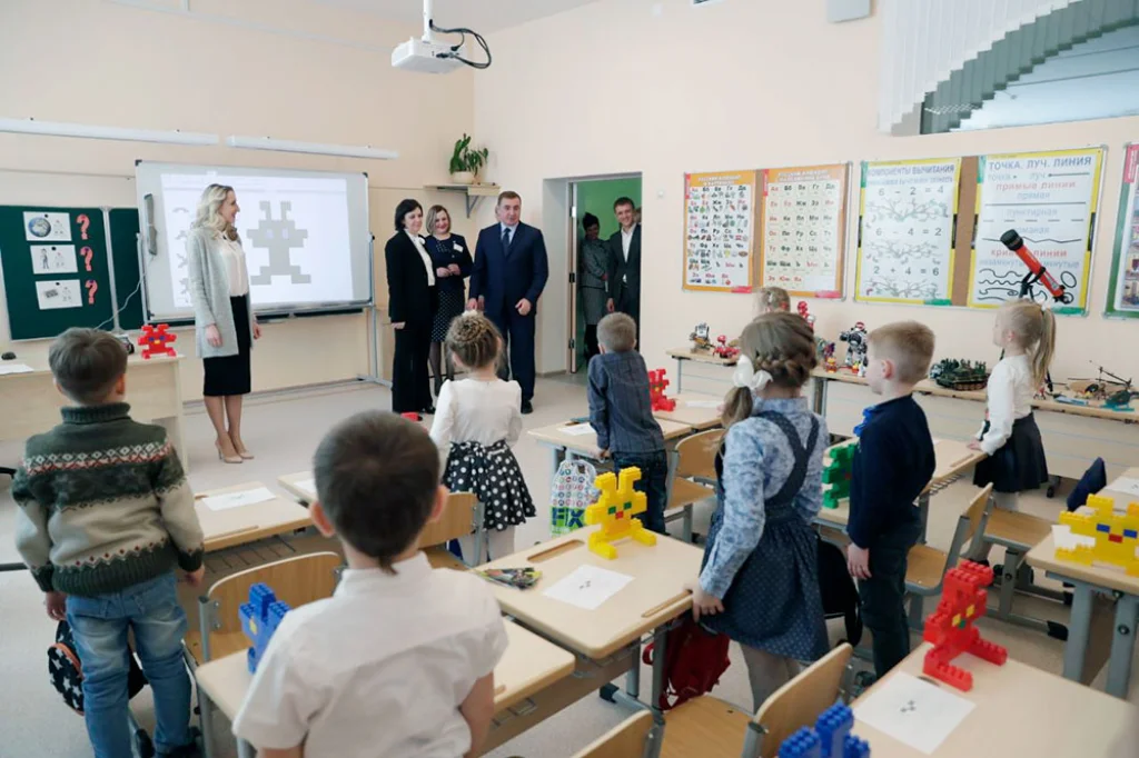 Губернатор Тульской области Алексей Дюмин посетил новую школу в мкр. Зеленстрой. Осенью этого года образовательное учреждение примет 600 школьников. Сейчас здесь проводят подготовительные занятия для будущих первоклассников.
