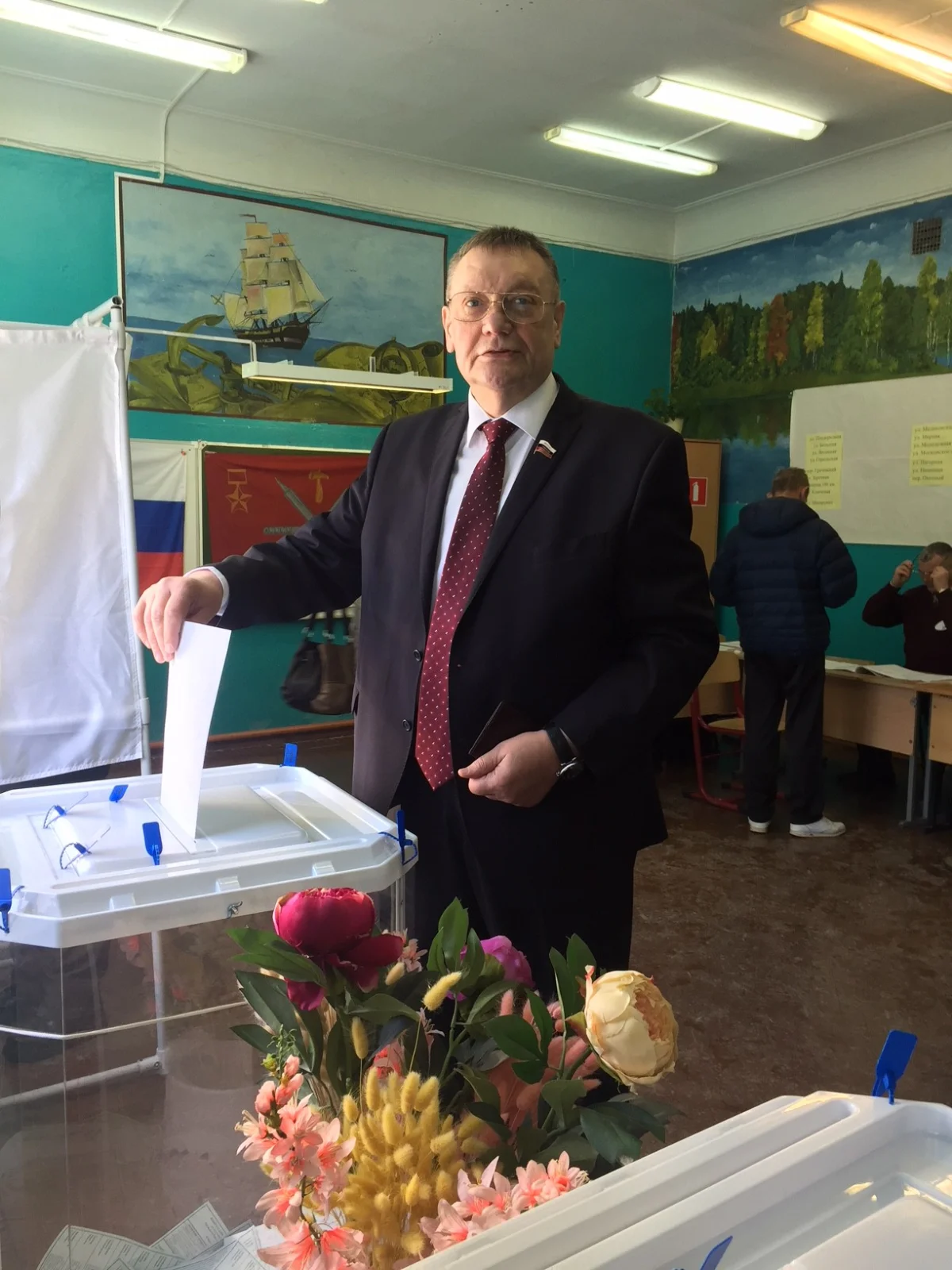 Председатель областной Думы Сергей Харитонов проголосовал на избирательном участке в тульском поселке Горелки.