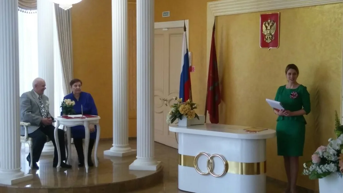 Во Дворце бракосочетания города Тулы сотрудники отдела по регистрации заключения брака поздравили с 60-летним юбилеем супружеской жизни семью Карташевых - Юрия Васильевича и Лидию Ивановну.