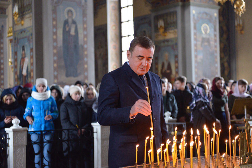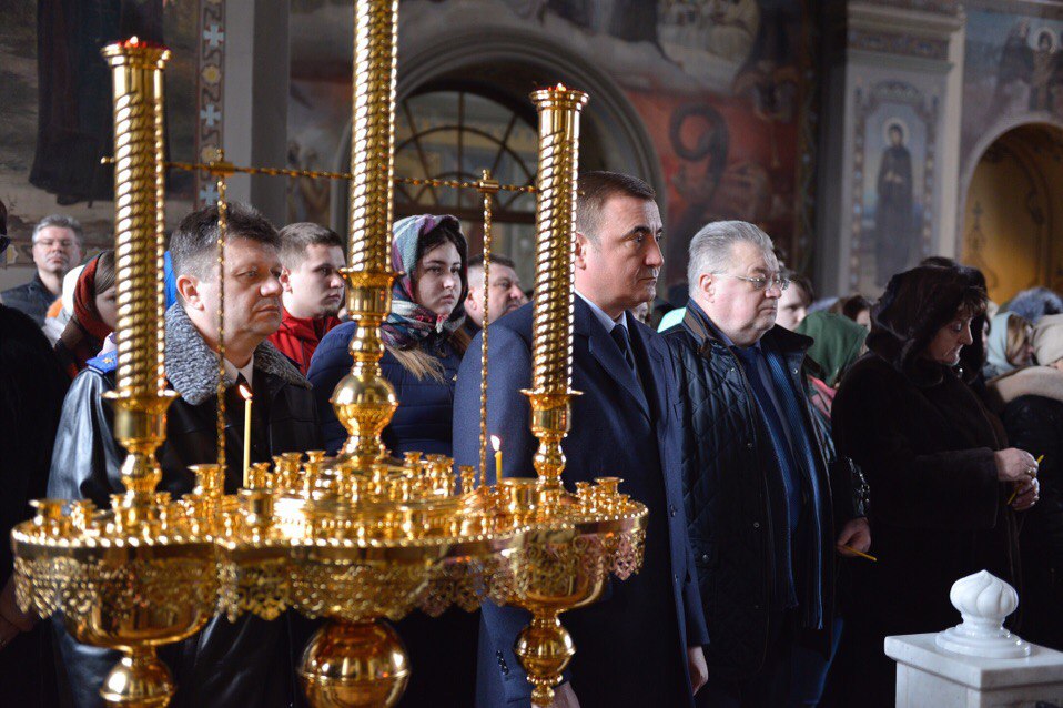 В соборе вместе с туляками присутствует губернатор Тульской области Алексей Дюмин.