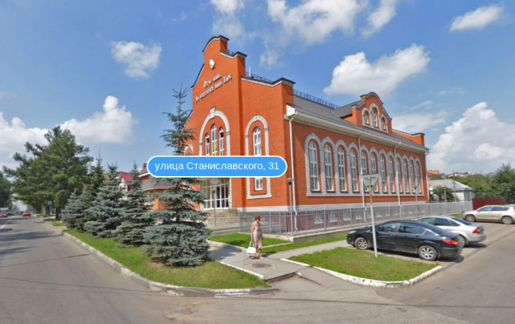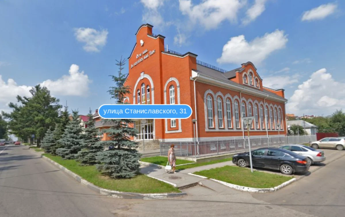 Дом молитвы евангельских христиан-баптистов расположен на ул. Станиславского в Туле. По документам здание является жилым, так как община зарегистрирована как юрлицо. За неимением альтернатив дом нельзя оформить иначе. Он стоит на территории, относящейся к категории земель населённых пунктов.