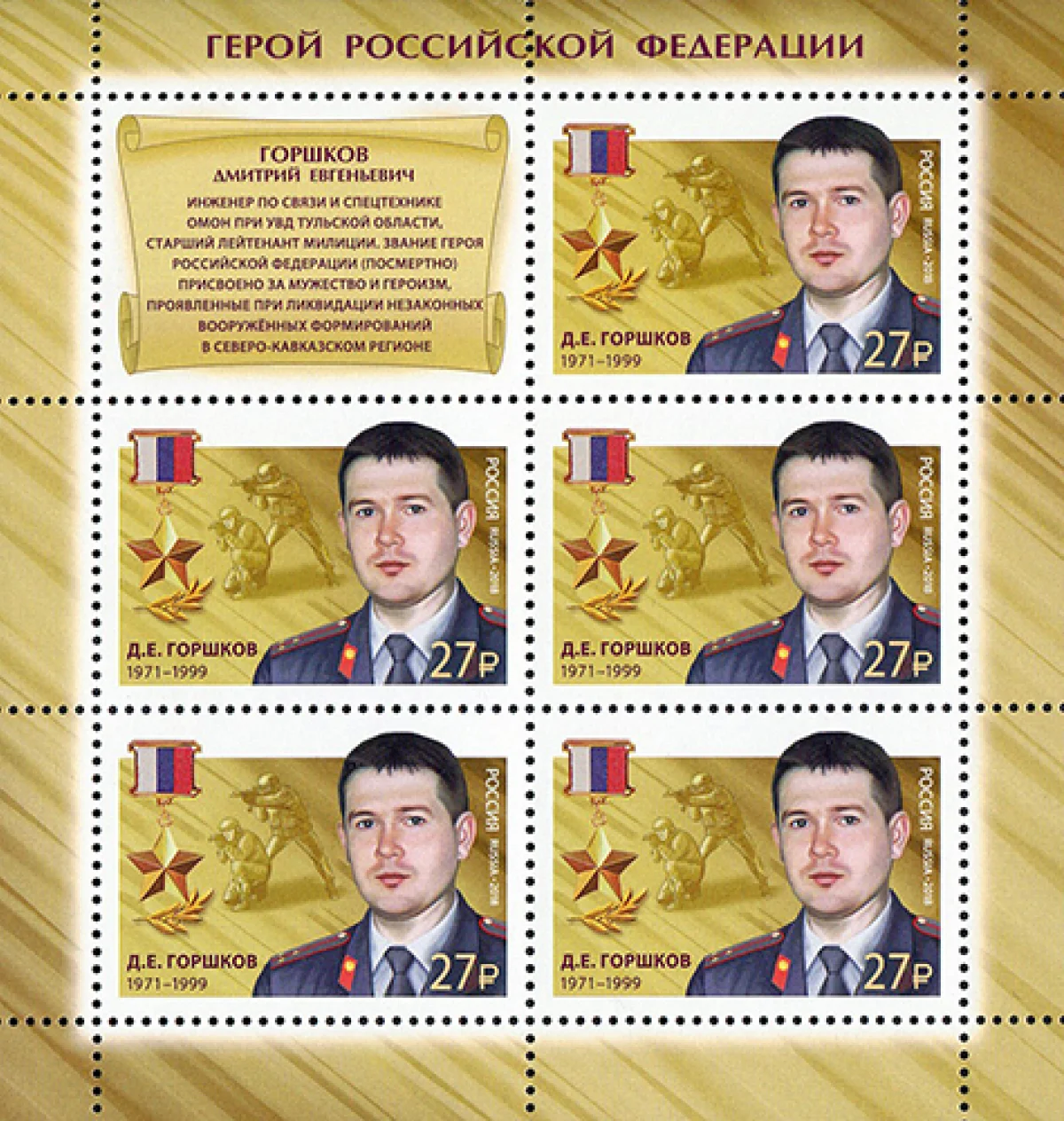 5 апреля в рамках серии «Герои Российской Федерации» в почтовое обращение вышла марка, посвящённая старшему лейтенанту Дмитрию Горшкову.
