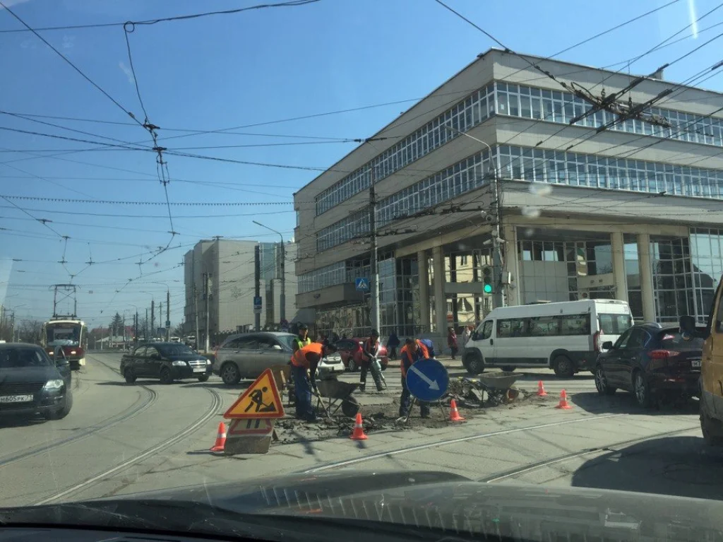 Как сообщают очевидцы, в Туле на пересечении улиц Советской и Оборонной проходят ремонтные работы на травмайных путях.