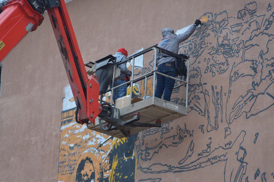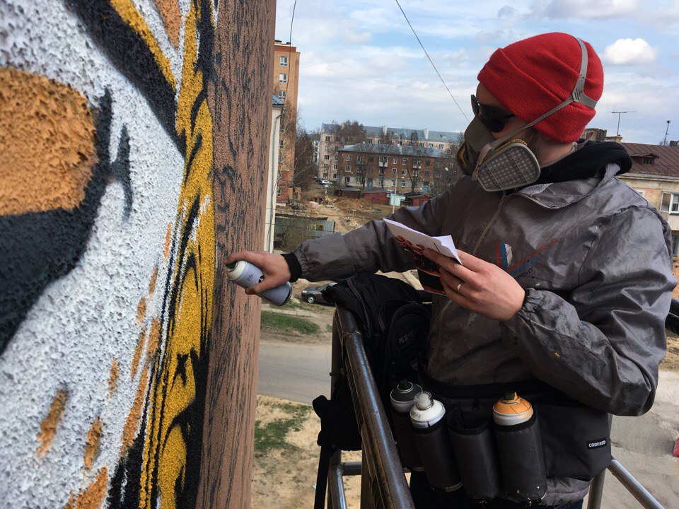 В Туле на стене дома по ул. Немцова рисуют патриотическое граффити