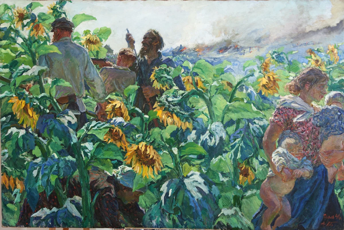В истории русского искусства XX века не может остаться незамеченным имя Александра Аркадьевича Пластова. Перу живописца принадлежит несколько тысяч картин, над которыми он работал до глубокой старости. На выставке представлена картина художника «Немцы пришли». Произведение производит сильнейшее эмоциональное впечатление. Картина о героизме, страданиях и жизни народа в пору Великой Отечественной войны создана в 1941 году.