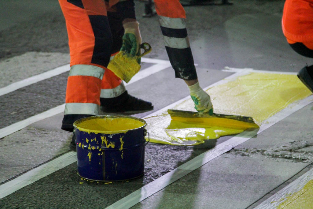 Дорожная разметка наносится краской, методами холодного пластика и термопластика. Гарантия на разметку, нанесенную пластиком составляет один год. Полностью работы по нанесению горизонтальной дорожной разметки будут выполнены к 31 августа.