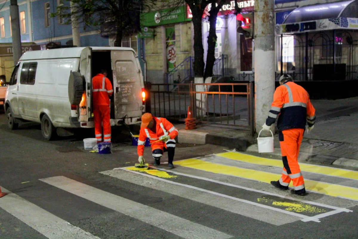 Осуществлялось нанесение продольной дорожной разметки 1.3 (двойная сплошная) и разметка 1.14.1 («зебра»). Всего в этом году разметка будет нанесена на порядка 800 пешеходных переходах.