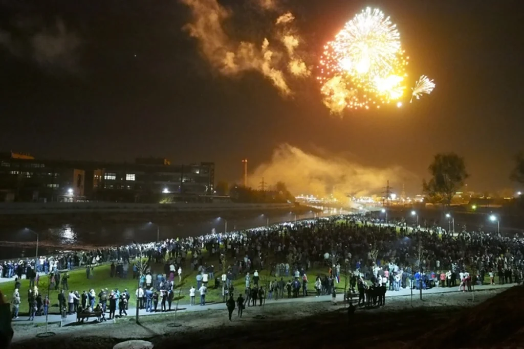 При этом жители и гости города на набережной Упы смогут увидеть многоуровневое пиротехническое шоу.