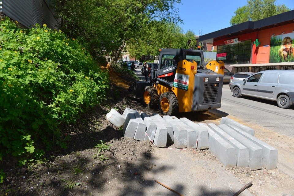 Евгений Авилов проинспектировал работы по обустройству тротуара на Арсенальной