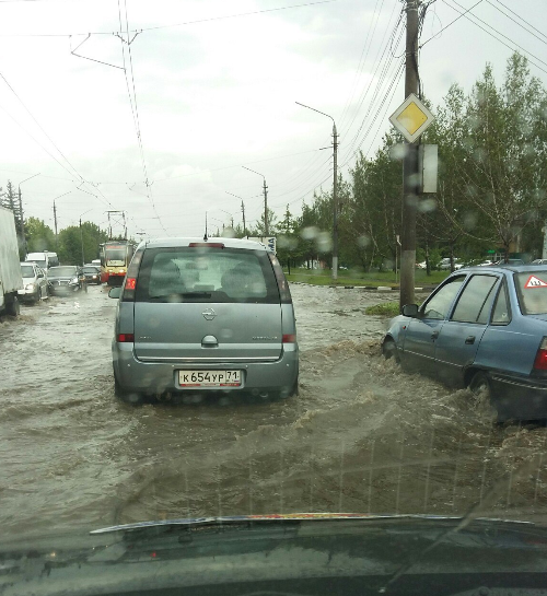 По всей видимости, проблема с ливневками остаётся открытой. Кратковременный ливень, внезапно обрушившийся на Тулу, затопил полгорода. Люди на остановках вынуждены были забираться на лавочки, чтобы не промочить ноги. На некоторых улицах образовались реки такой глубины, что скрывали колеса машин.