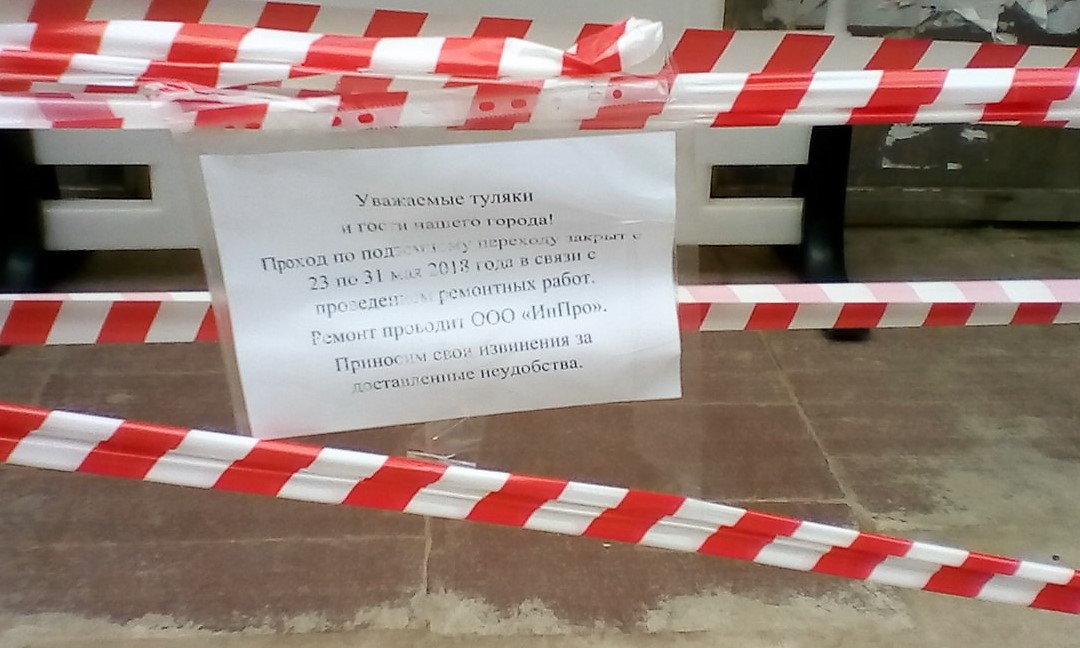 Утром, как и в любой другой учебный день, традиционно шел на пару в родной ТулГУ. Шел себе по ул. Станиславского, шёл... Дошёл до подземного перехода и увидел вот это: