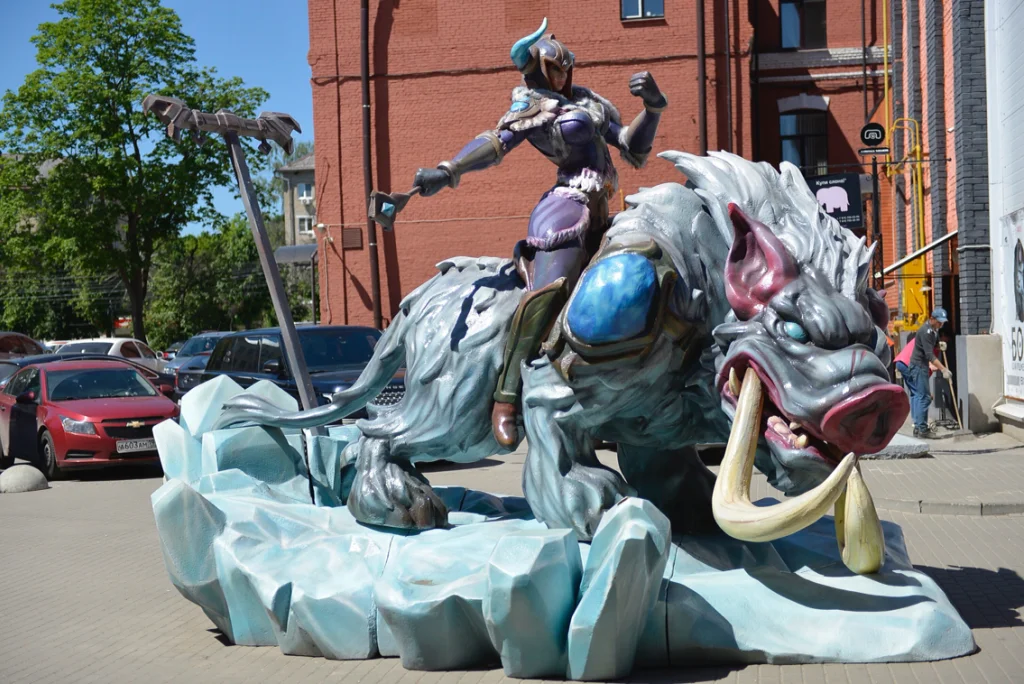 На территории Ликерки Лофт появилась новая скульптура, которая тут же превратилась в объект для селфи. Особенно рады заядлые геймеры, ведь девушка на кабане — это Седжуани — персонаж знаменитой стратегии League of Legends.