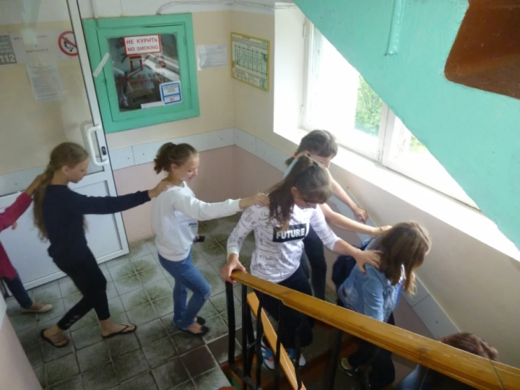 По легенде учений после возникновения пожара срабатывает пожарная сигнализация, дети в сопровождении вожатых выходят из помещений в безопасное место. Сотрудники детского оздоровительного лагеря проверяют все помещения, чтобы убедится в отсутствии детей.