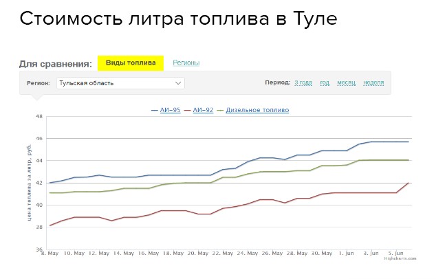 Цены на топливо в Туле с апреля по май этого года выросли на 5,6%, с начала года бензин подорожал на 7,2%.