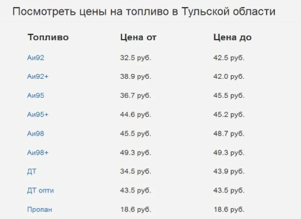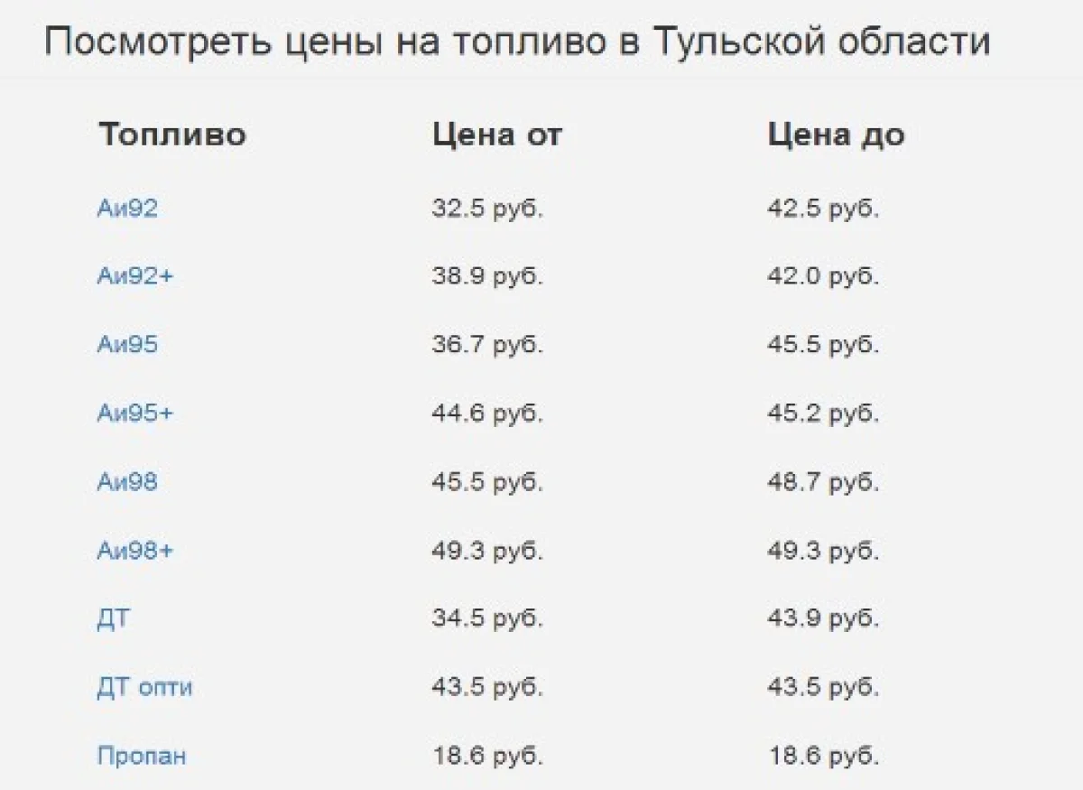 В Тульской области за месяц цены на топливо выросли в среднем на три рубля