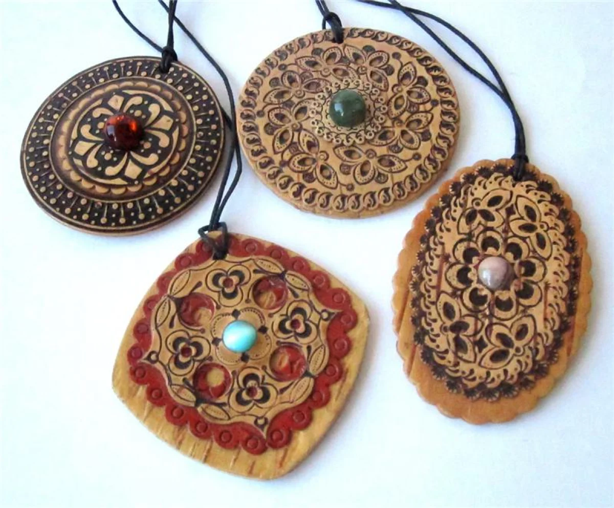 Участникам покажут технологию изготовления миниатюр из бересты в виде подвески треугольной формы на веревочке,