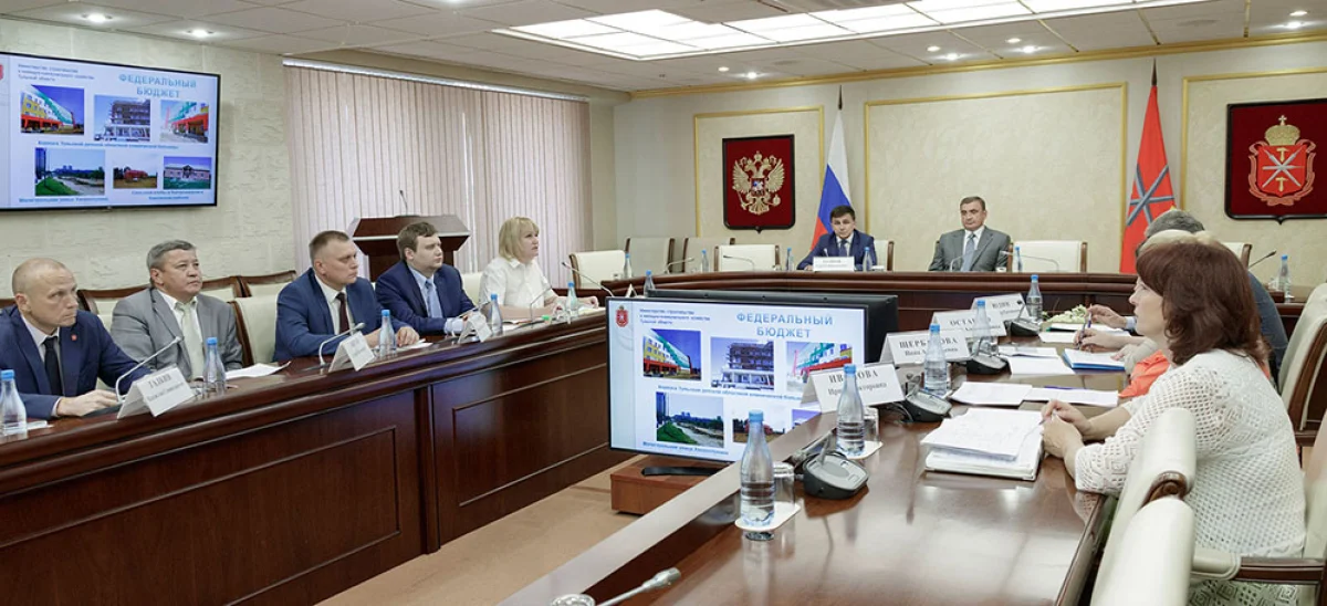 В ходе совещания министр строительства и ЖКХ Тульской области Элеонора Шевченко доложила о ситуации по строительству социально значимых объектов, масштабное строительство которых ведётся в области с 2017 года. С привлечением средств бюджета сейчас в регионе строится 18 объектов. Еще 14 – находятся в стадии проектирования.