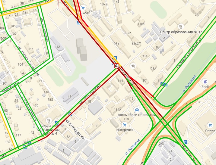 Движение транспорта сильно затруднено, средняя скорость движения составляет 3 км/ч.