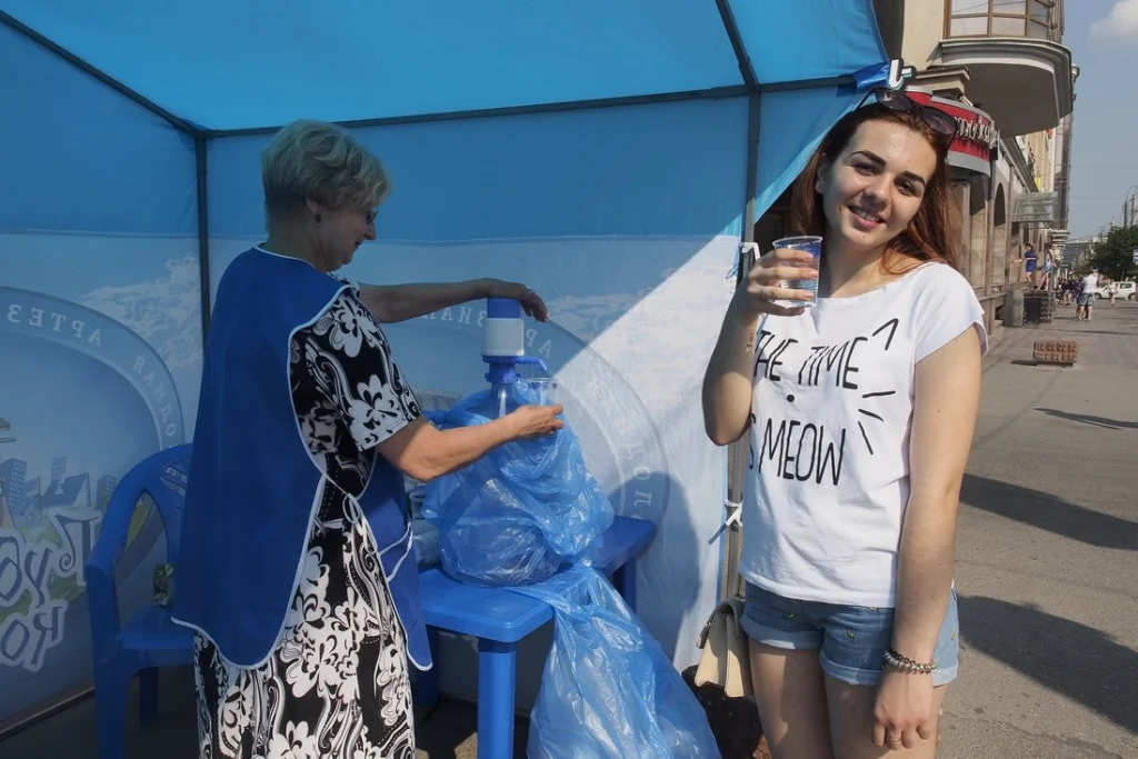 Традиционная акция проходит в самые жаркие дневные часы, когда температура воздуха достигает отметки в 30 градусов и выше. Прохладную воду раздают на улицах Тулы как в будние, так и в выходные дни.