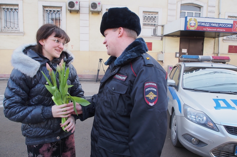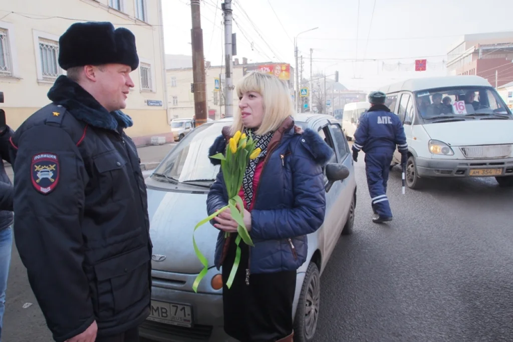Такое милое мероприятие провели накануне Международного женского дня. Тулячки, завидев взмах жезла сотрудника Госавтоинспекции, останавливались и готовились предъявить документы. Но в этот день на работников в форме была возложена куда более приятная миссия — поздравление женщин-водителей с 8 Марта.