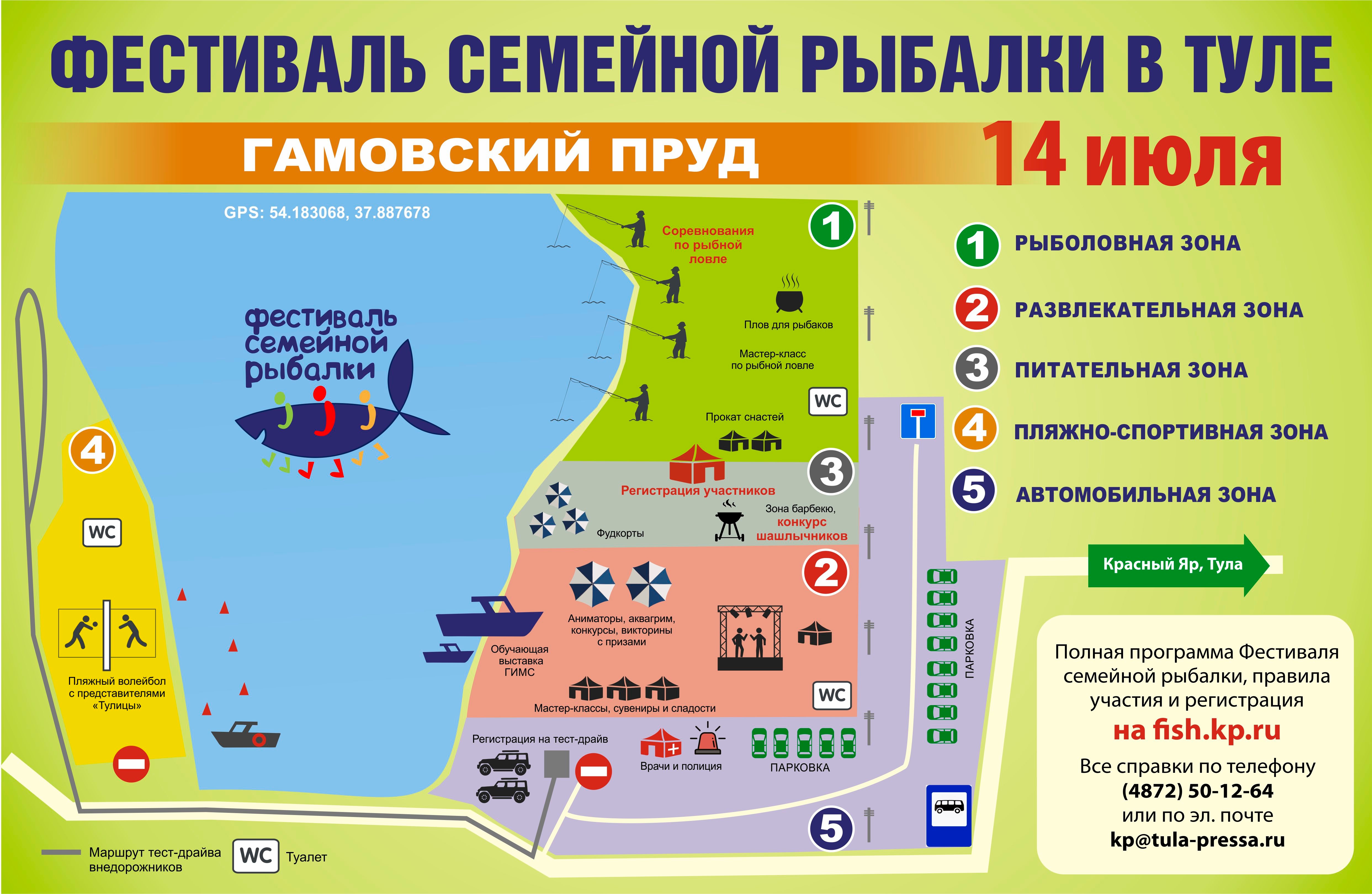 Напомним, что фестиваль семейной рыбалки — это уникальное массово-спортивное мероприятие, которое состоится 14 июля на Гамовском пруду поселка Красный Яр. Это яркий летний опенэйр для всей семьи. В программе фестиваля соревнования по рыбной ловле, турнир по пляжному волейболу с участием «Тулицы», конкурс шашлычников, концерт, фудкорты, аниматоры, аквагрим, мастер-классы для всех, призы, подарки, розыгрыши, тест-драйв по бездорожью, вкусные угощения и многое другое.
